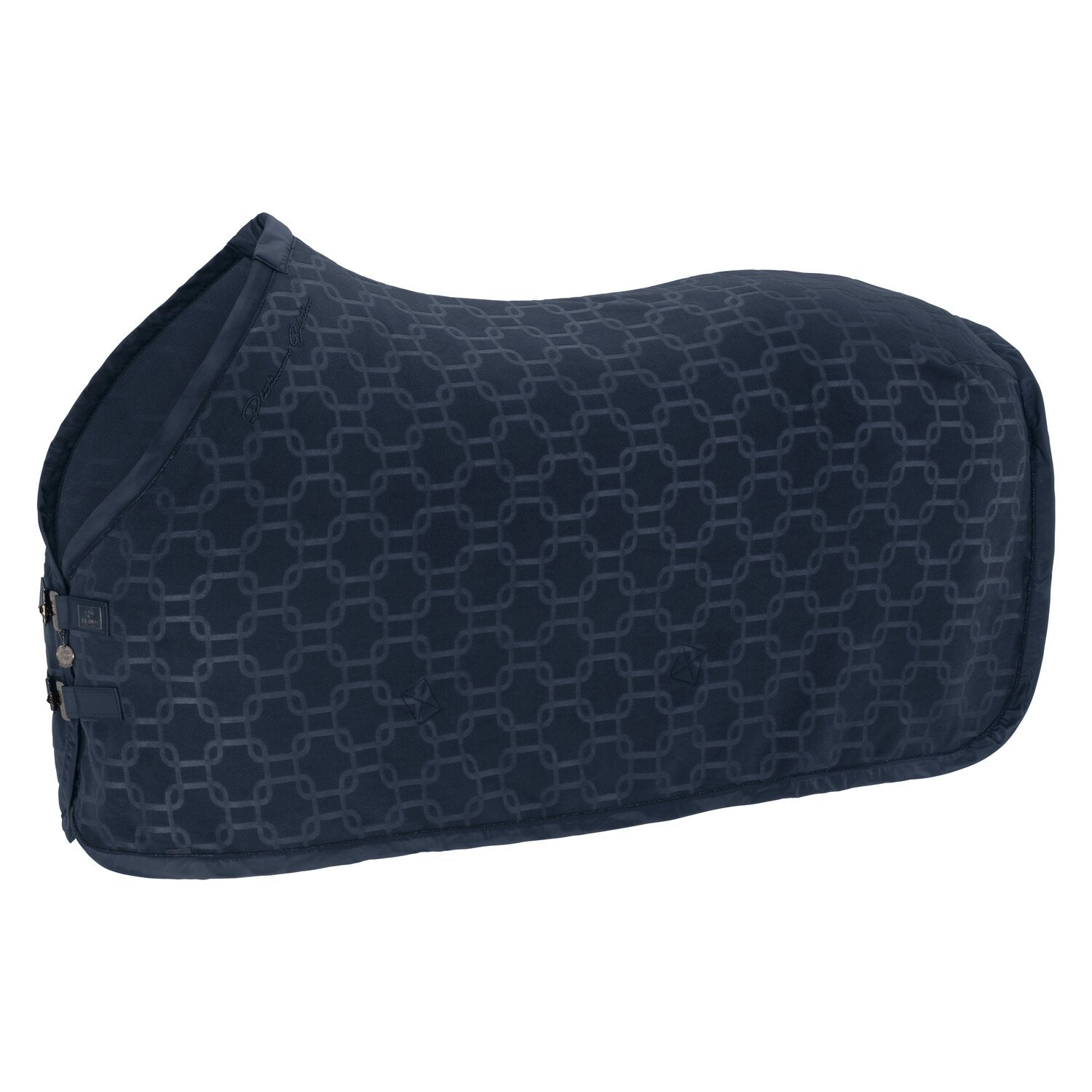 In hochwertiger Anti-Pilling Fleece Qualität mit schickem `Chain-Allover Print` präsentiert ESKADRON diese Abschwitzdecke, die als Teamplayer in Sachen Styling genau das Richtige ist. Das dehnbare Fleece-Material verleiht mit seinen Funktionen atmungsaktiv und schweißableitend einen hervorragenden Tragekomfort. Für einen rutschfesten Sitz verfügt die Decke über eine Doppelbrustverschnallung mit Klettfixierung, die innenliegende, abnehmbare Kreuzbegurtung und einen integrierten Schweifriemen. Die sportliche Decke kommt durch das Glossy Widerristpolster und die edle Lurex-Biese auf der breiten Glossy Einfassung schlichtweg schön und selbstbewusst daher. • Hochwertige Anti-Pilling Fleece Qualität mit schickem `Chain-Allover Print` • Glossy Widerristpolster • Edle Lurex-Biese auf breiter Glossy Einfassung • Platinum Schriftzug am Hals, beidseitig • Doppelbrustverschnallung mit Klettfixierung • Innenliegende, abnehmbare Kreuzbegurtung • Schweifriemen integriert