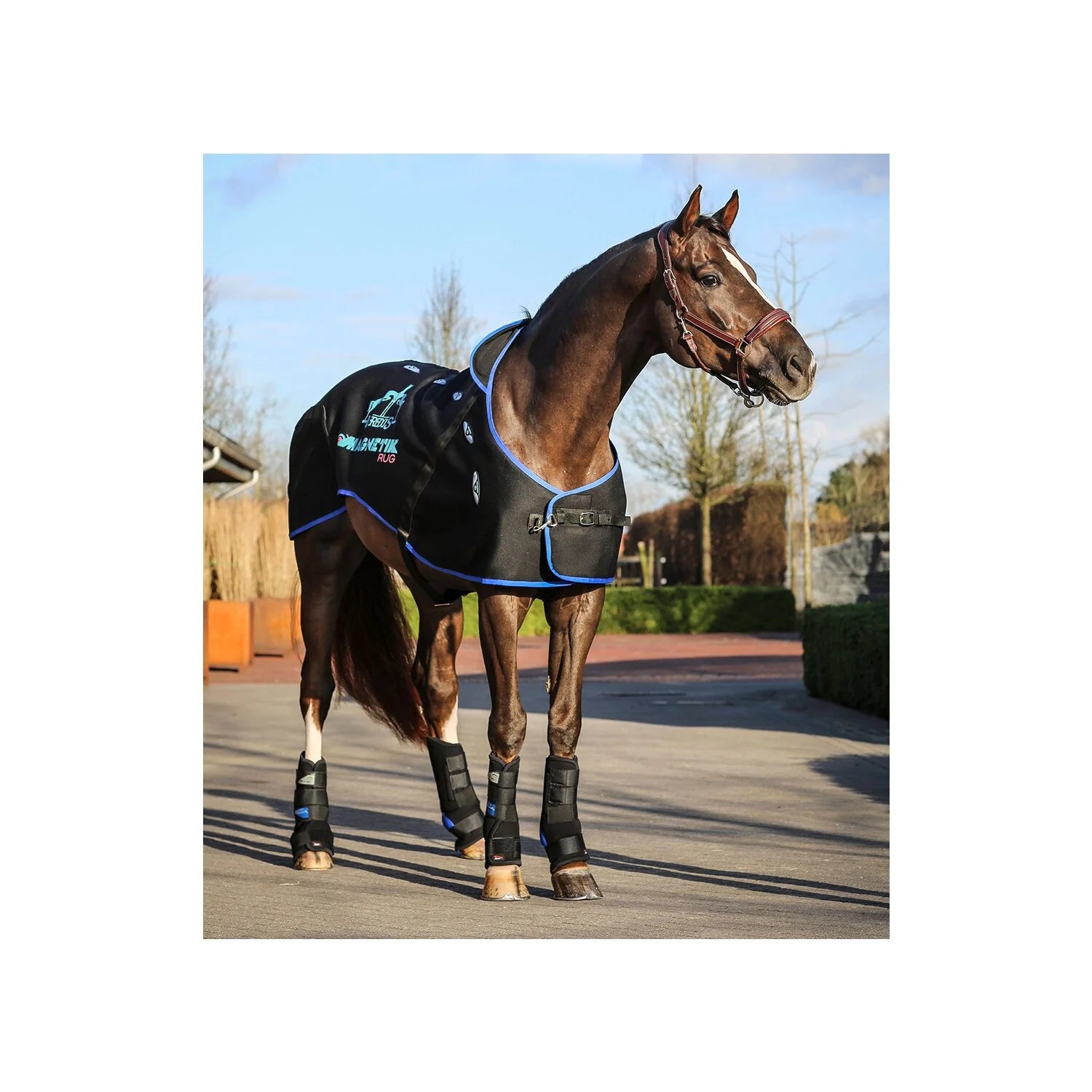 Passend zum hoch innovativen magnetischen Halsteil Art. 541683 von KENTUCKY gibt es diese leichtgewichtige Decke. Modernste Technik basierend auf der Bekaert BEKINOX®-Technologie enthält sie feinstes Inox-Garn (eine Edelstahlfaser), das in das Gewebe eingewebt wird. So entsteht ein Faraday-Käfig, der die im Körper des Pferdes erzeugten Magnetfelder reflektiert. Sie fördert die Durchblutung und den Sauerstofffluss. Darüber hinaus beschleunigt es den Erholungsprozess in einer geschützten, natürlichen Art und Weise. Die Decke besteht aus einem sehr starken Gewebe, das sowohl im Sommer als auch im Winter in Kombination mit anderen Decken verwendet werden kann. Es ist ideal, um die Muskeln des Pferdes vor und nach dem Reiten zu entspannen und kann auch über Nacht sehr gut auf dem Pferd gelassen werden. Wir empfehlen, die Decke zunächst eine Stunde zu verwenden und die Anzahl der Stunden an Nutzung beim Pferd in den folgenden Tagen schrittweise zu erhöhen, damit es sich an das Kribbeln gewöhnen kann, das entstehen kann. Maschinenwaschbar bei 30°, kein Trockner.