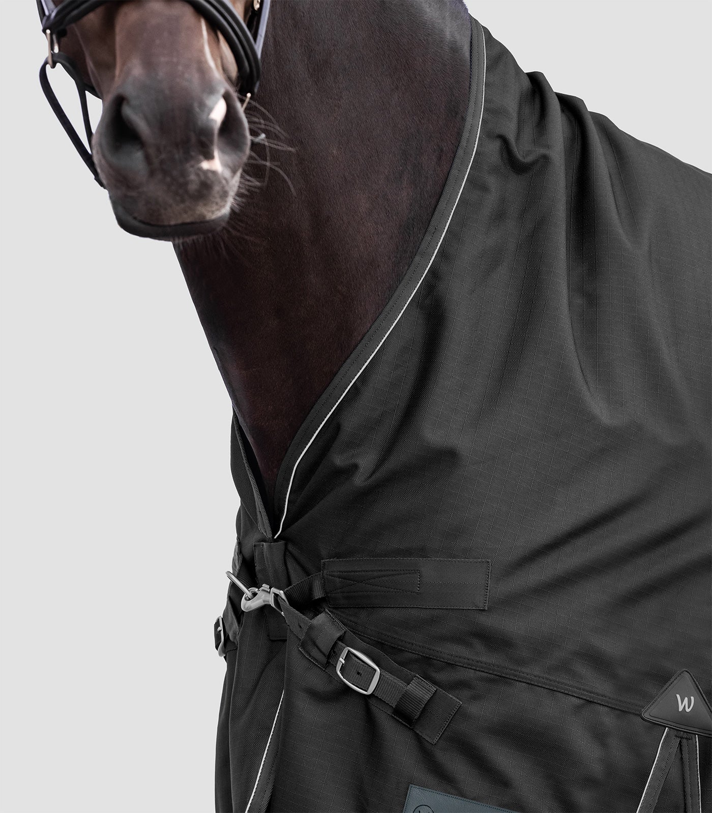 Die High Neck Ausführung ist höher geschnitten, um Scheuerstellen am Widerrist und Mähnenkamm zu vermeiden und den Halsbereich des Pferdes optimal zu schützen.