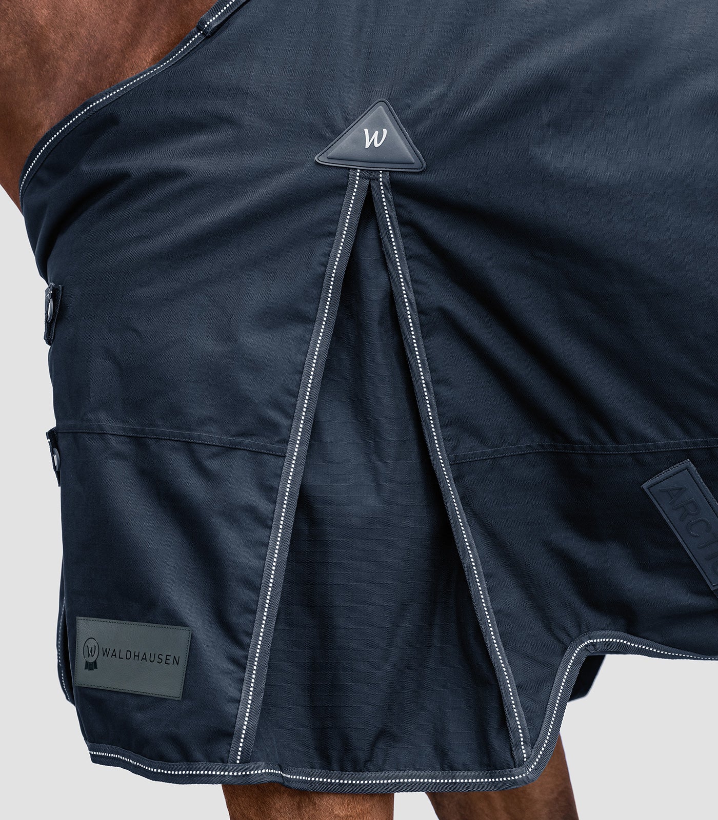 Die Brusterweiterung der Waldhausen ARCTIC Deckenserie mit doppeltem Drehhaken Verschluss und zusätzlicher Abdeckung eignet sich besonders für Pferde, welche zwischen zwei Größen stehen oder einen breiteren Brustkorb haben. Sie bietet bis zu 10 cm mehr Platz und ist den Uni-Size-Maßen 22 cm x 30 cm erhältlich.