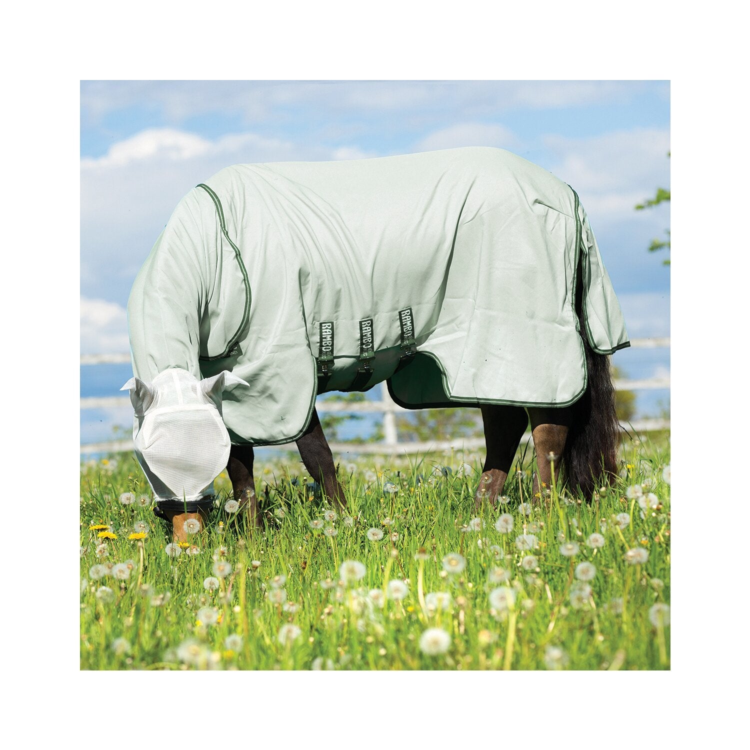 Der Hoodie von HORSEWARE bietet einen Komplettschutz vor Hautreizungen im Sommer. Aus starkem, engmaschigem 1000 Denier Polyester-Material, das extrem reißfest, langlebig und komplett atmungsaktiv ist - ein superweiches, angenehm zu tragendes Material, das viele Sommer lang hält. Durch das integrierte Halsteil und den übergroßen Schweiflatz wird das Pferd von Kopf bis Schweif vor Insekten und UV-Strahlung geschützt. Mit seidigem Innenfutter an Mähne, Schweif und Schulter um Scheuerstellen zu vermeiden sowie Surefit Halsausschnitt für mehr Bewegungsfreiheit, wenn das Pferd seinen Kopf zum Grasen senkt. Der doppelte Beinausschnitt und der erweiterte Bauchlatz bieten zusätzlichen Schutz während das V-Vorderverschluss-System, drei Bauchgurte und der Schweifriemen ein Verrutschen vermeiden. Inklusive Fliegenmaske. - V-Brustverschluss - Doppelter Beinausschnitt - Integriertes Halsteil - UV-Schutz - Gerade Bauchgurte - Liner Kompatibel