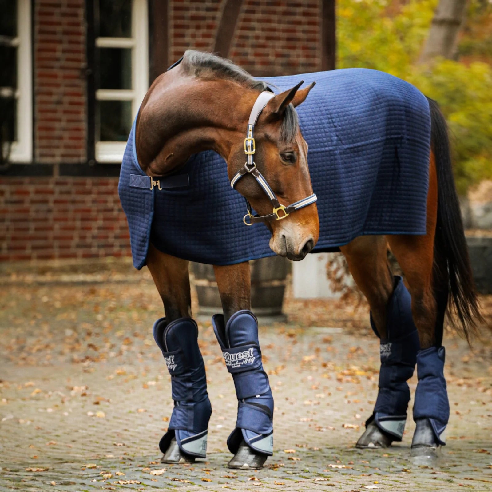 Die EQUEST Decke Climatherm III ist eine hochwertige Abschwitzdecke mit besonders starker Abschwitzleistung und ideal für den Einsatz nach dem Training, beim Transport oder an kühleren Tagen im Stall. Mit einem Materialgewicht von 600 g/m² überzeugt sie durch eine robuste, formstabile Qualität und eine ergonomische Passform. Das weiche Innenfutter sorgt für angenehmen Tragekomfort und unterstützt das schnelle Abtransportieren von Feuchtigkeit, damit das Pferd zügig trocknet und vor Auskühlung geschützt bleibt. Der praktische Brustverschluss mit Klett sowie die Schweifkordel gewährleisten einen sicheren Sitz. Durch die eleganten Grundfarben und den farblich passenden Einfass wirkt die Decke zudem besonders edel und professionell.