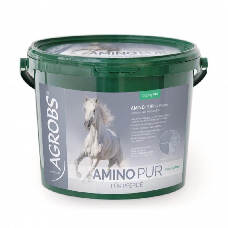 AGROBS Amino pur ist ein Ergänzungsfuttermittel für Pferde zur gezielten Unterstützung bei z.B. sportlicher Belastung. Eine ausreichende Versorgung mit essentiellen Aminosäuren, wie Threonin, Methionin und Lysin, Vitaminen und Mineralstoffen, kann den Muskelaufbau unterstützen, sowie Haut-, Huf- und Fellproblemen entgegenwirken. Die ausgewählte Zusammensetzung auf Basis warmluftgetrockneter Wiesengräser und -kräuter sowie Spirulina-Alge und Leinsamen macht AminoPur auch für stoffwechselempfindliche Pferde besonders wertvoll.