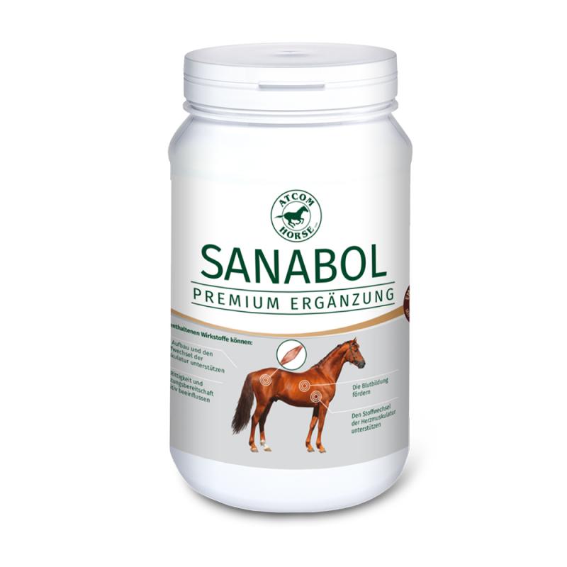 ATCOM Sanabol ist ein hochwertiges Ergänzungsfuttermittel, das gezielt Pferde beim Muskelaufbau, bei Verspannungen und in der Leistungsentwicklung unterstützt. Es kombiniert essentielle Aminosäuren, Vitamine und Mineralstoffe, die den Muskelstoffwechsel fördern, die Leistungsbereitschaft erhöhen und die Herz- und Blutfunktion stärken. Die enthaltenen Vitalstoffe verbessern den Sauerstofftransport bei Leistungsspitzen und können die Losgelassenheit sowie Rittigkeit nachhaltig optimieren. Sanabol eignet sich besonders für Dressur- und Springpferde ab Klasse L, Traber, Distanzpferde, Galopper sowie vielseitig eingesetzte Pferde mit erhöhtem Bedarf an Muskelunterstützung.