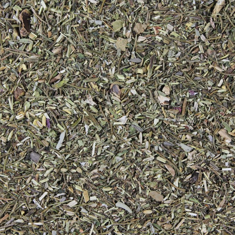 Soja(bohnen)-Extraktionsschrot-futter (aus genetisch verändertem Soja hergestellt), Weizenkleie, Luzerne-Pellet, Gerstenflocken, Weizenfuttermehl, Leinsamen, Kartoffeleiweiß, Puffgerste, Rübenmelasse, Puffmais, Natriumchlorid (2%), Hafer, getoastete Sojabohnen, Ackerbohnenflocken, Calciumcarbonat, Karotten - getrocknet, Kaliumchlorid, Porree -getrocknet, Bockshornkleesaat , Fructo-Oligosaccharide