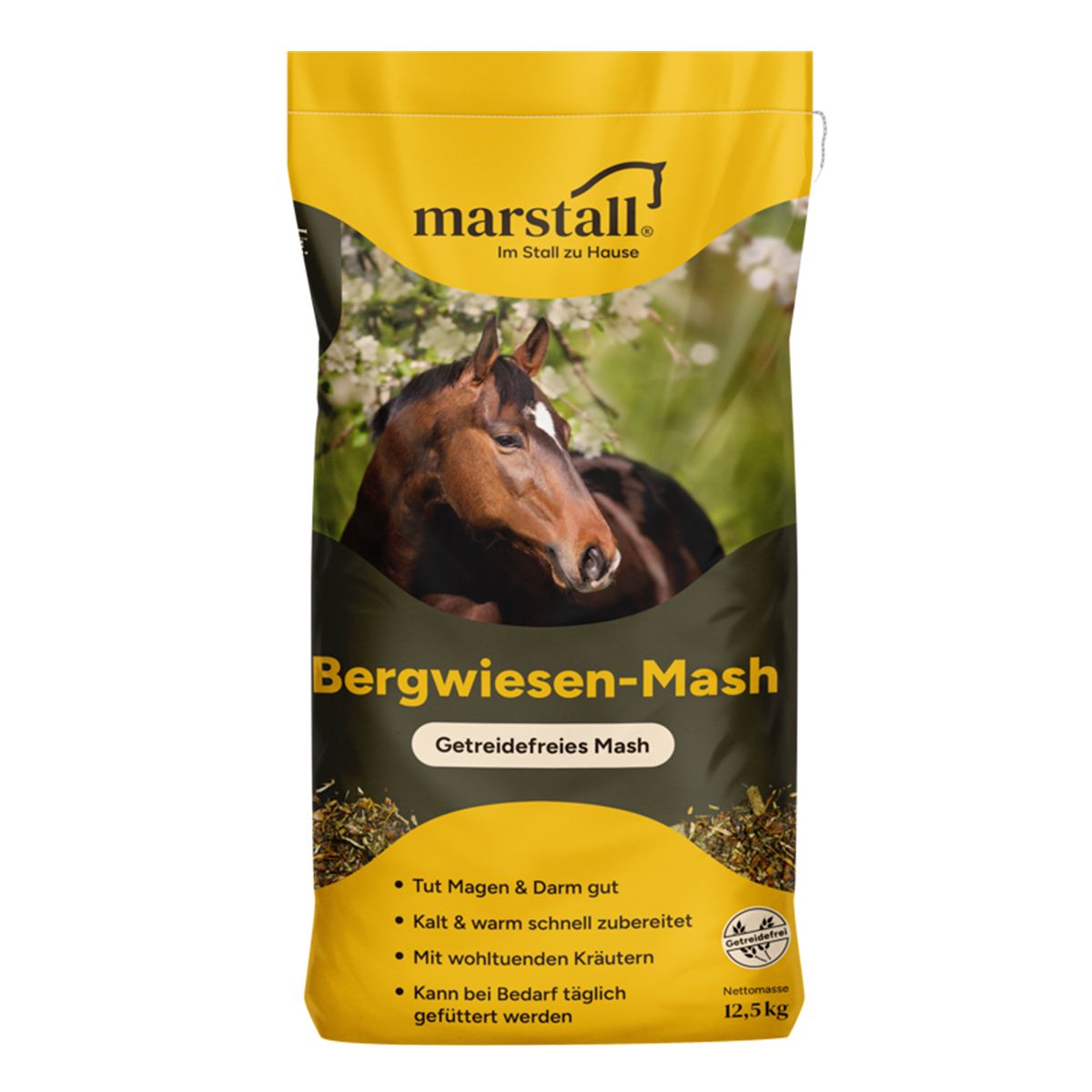 Cavalor Sportmash Recup ist ein Mash, das mit 1 Teil Mash und 2 Teilen Wasser (60°C) angerührt wird. Nach 30 Minuten Einweichzeit kann das Mash verfüttert werden.