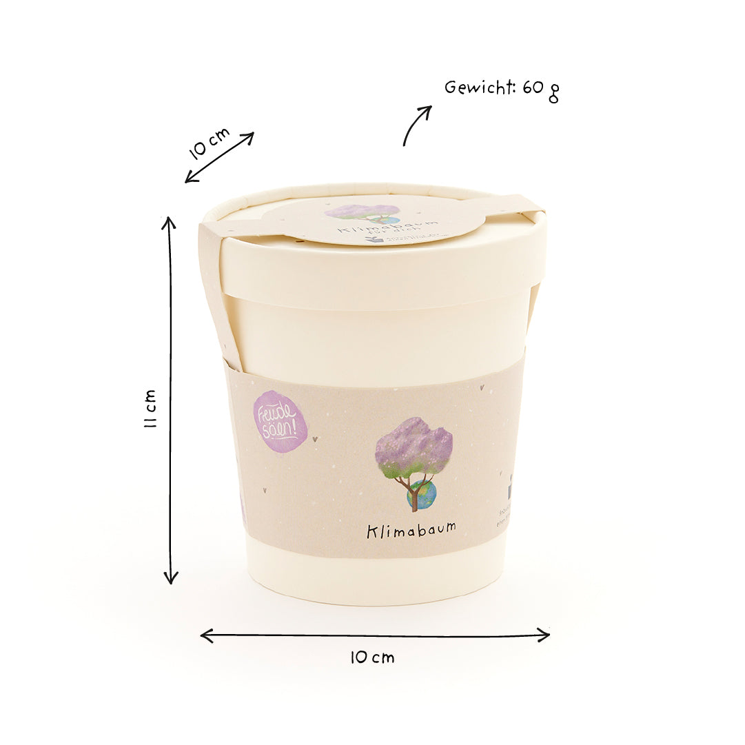 Klimabaum – Ein grüner Gruß mit Zukunft: Dieses bedeutungsvolle Anzuchtset vereint Symbokraft und Nachhaltigkeit in einem liebevoll gestalteten Becher. Ein Geschenk für mehr Natur, mehr Bewusstsein und eine bessere Zukunft. Alles drin für einen Klimabaum: Das Set enthält Klimabaum-Saatgut (Paulownia tomentosa), eine Kokos-Quelltablette, einen Anzuchtbecher und eine Anleitung. Mit etwas Pflege wächst daraus ein Klimabaum mit großer Wirkung im Garten. Ein Geschenk für die Zukunft: Ob zum Geburtstag, als nachhaltiges Mitbringsel, zum Earth Day, zur Aufmunterung oder als kleines Dankeschön – dieser Becher ist ideal für alle, die gerne bewusst schenken. Perfekt für Freunde, Familie, Kolleginnen, Naturfreunde oder Klimaschützer. Nachhaltig & umweltfreundlich: Der Becher ist aus umweltfreundlichem Material gefertigt, die Verpackung plastikfrei. So wird aus einer kleinen Geste ein echter Beitrag zum Umdenken – stilvoll, natürlich und sinnstiftend.