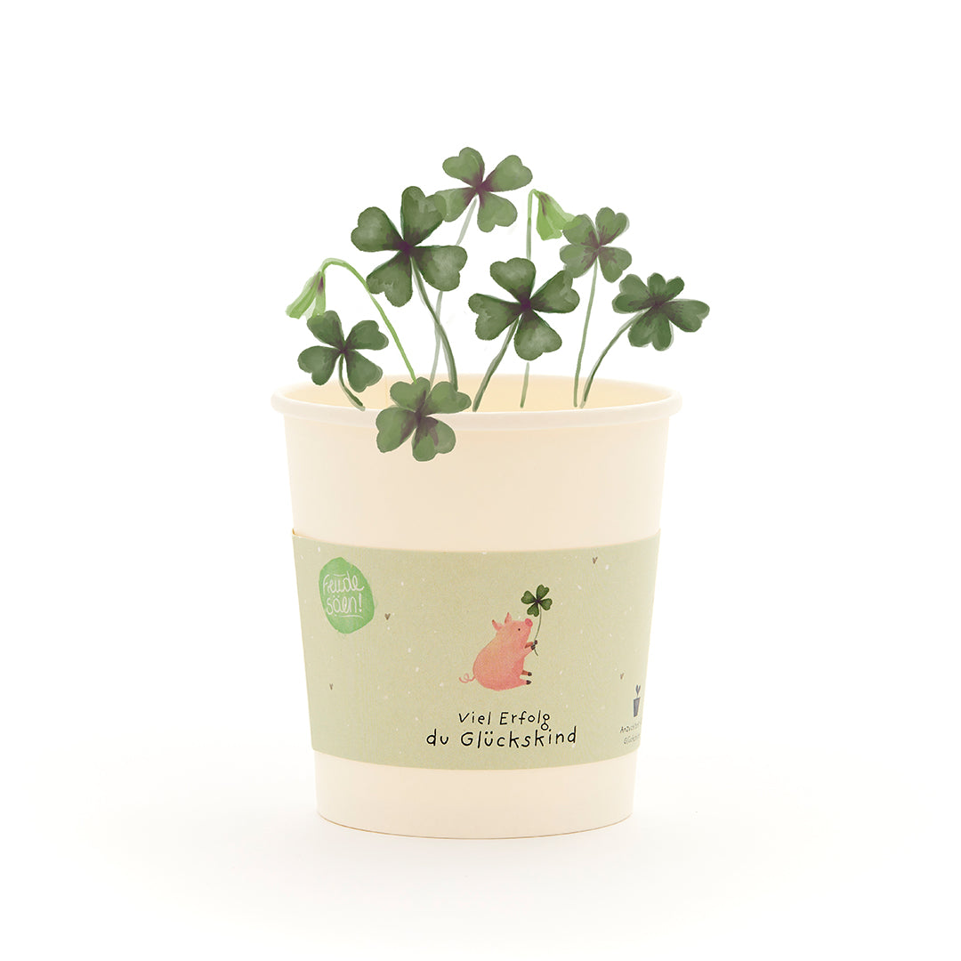 Verschenke einen Hauch von Glück: Dieses liebevoll gestaltete Anzuchtset für Glücksklee sagt mehr als tausend Worte: Es schenkt Mut, Glück und ein Lächeln – mit einem Becher, der zeigt, wie viel man jemandem wünscht. Der Spruch „Viel Erfolg, du Glückskind“ macht daraus ein kleines, aber bedeutungsvolles Geschenk. Alles drin für sprießenden Glücksklee: Das Set enthält Glücksklee-Saatgut, eine Kokos-Quelltablette, einen Anzuchtbecher und eine Anleitung. Schon bald wächst ein zarter Klee heran – Symbol für Glück, Neuanfang und Zuversicht. Ideal für Fensterbank, Büro oder Balkon. Ein Geschenk für große & kleine Meiliensteine: Ob zum Schulabschluss, zur Prüfung, für den Studienstart, den neuen Job, zum Umzug oder einfach zur Aufmunterung – dieser grüne Glücksbringer ist das perfekte Mitbringsel für Menschen, die du stärken und motivieren möchtest. Ideal für Freunde, Familie, Schüler, Studenten und Herzensmenschen. Nachhaltig: Der Becher besteht aus umweltfreundlichem Material, die Verpackung ist vollständig plastikfrei. Ein Geschenk, das nicht nur Glück bringt, sondern auch die Umwelt respektiert.