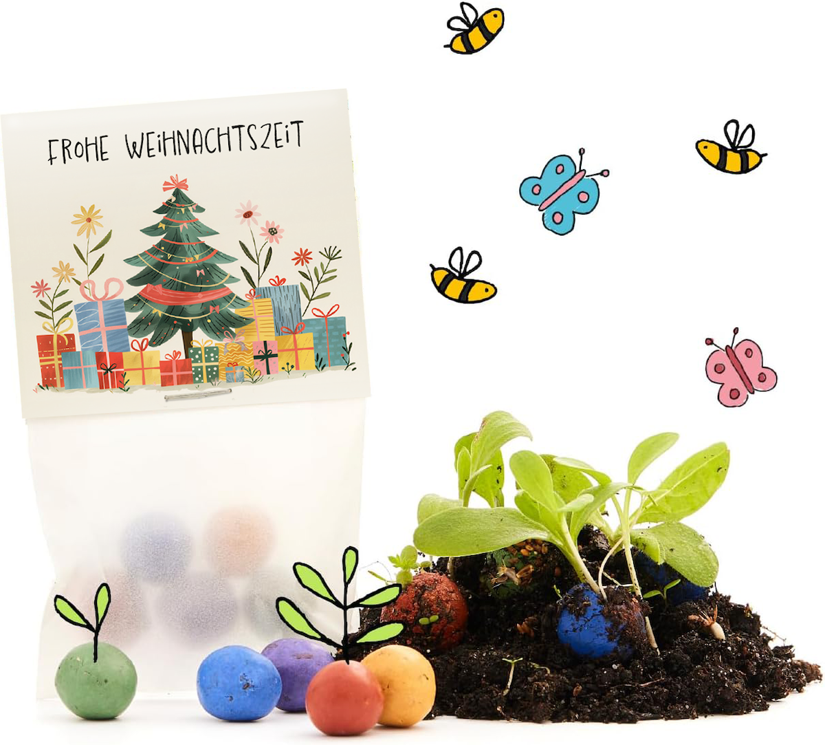 🎁 GIVE-AWAYS ZU WEIHNACHTEN: Enthält 10 liebevoll gestaltete Tütchen, gefüllt mit je 5 bunten Blumenkugeln. Die ideale, kleine Aufmerksamkeit zum "Danke"-Sagen für Freunde, Familie, Kolleginnen und Mitarbeiter – perfekt, um auf besondere Weise Freude zu schenken und ein frohes Fest zu wünschen. (Eine Blumenmurmel hat einen durchschnittlichen Durchmesser von 1,5 cm (+/-).)