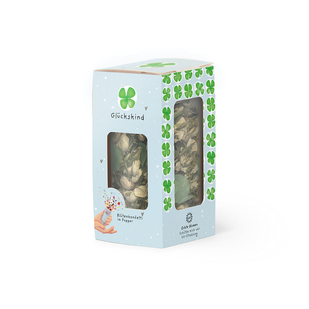 Viel Erfolg - mit einer Extraportion Glück: Ob Schulabschluss, Prüfungsstress, Jobbeginn oder Umzug - dieser Blütenkonfetti Popper mit der Aufschrift "Viel Erfolg, du Glückskind" ist das ideale Geschenk für alle, die vor einem neuen Kapitel stehen. Voller Mut, positiver Energie & einem Schuss Konfettiglück.