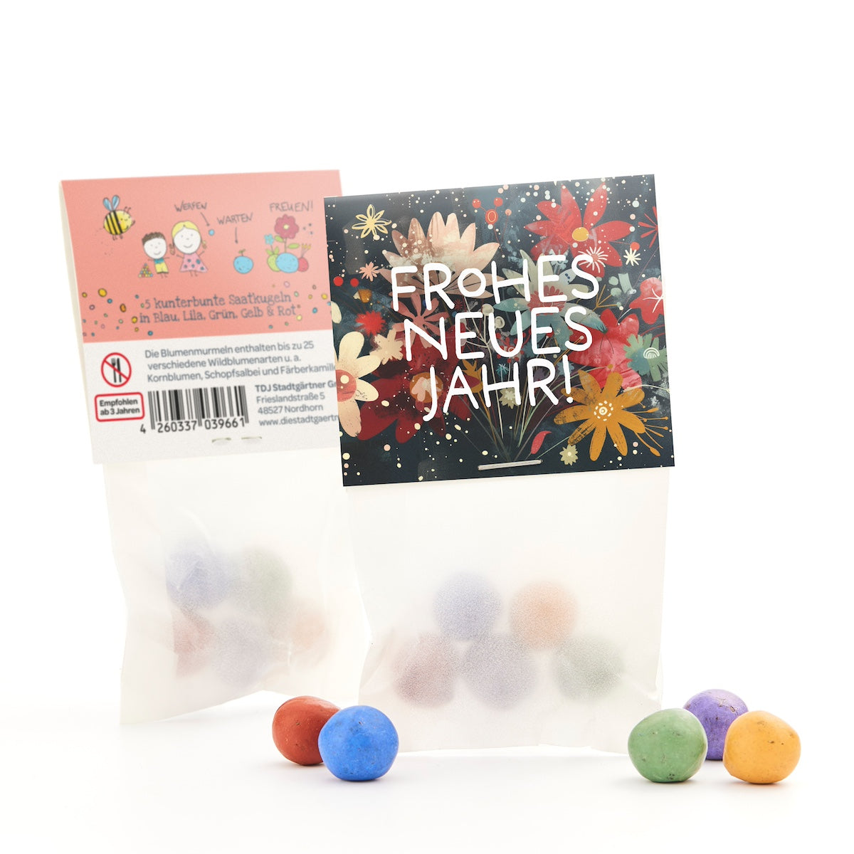 10x5 Blumenmurmeln im Tütchen "Frohes Neues Jahr"