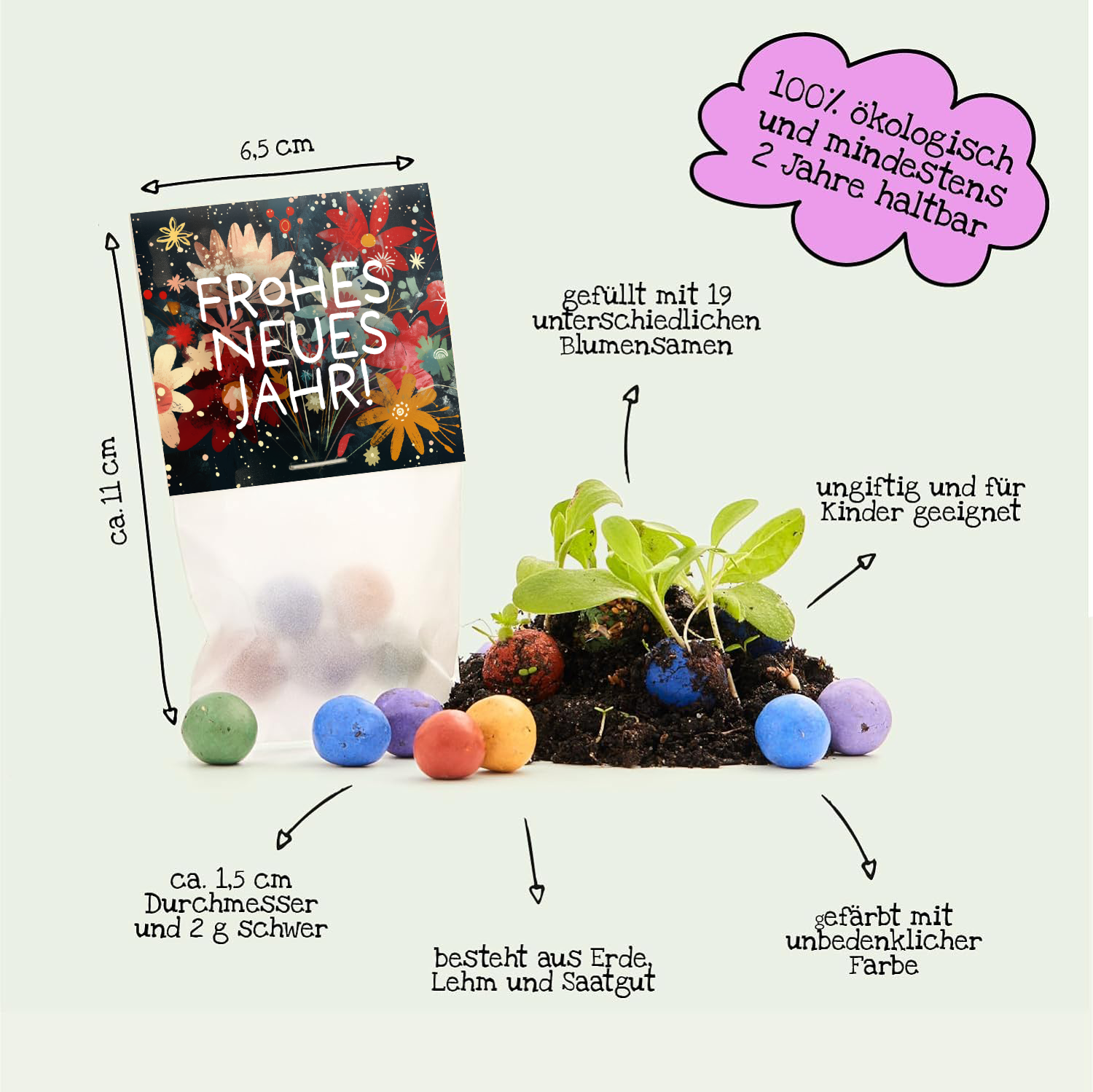 🎁 GIVE-AWAYS ZUM JAHRESWECHSEL: Enthält 10 liebevoll gestaltete Tütchen, gefüllt mit je 5 bunten Blumenkugeln. Die ideale, kleine Aufmerksamkeit zum "Danke"-Sagen für Freunde, Familie, Kolleginnen und Mitarbeiter – perfekt, um auf besondere Weise Freude zu schenken und ein frohes neues Jahr zu wünschen.