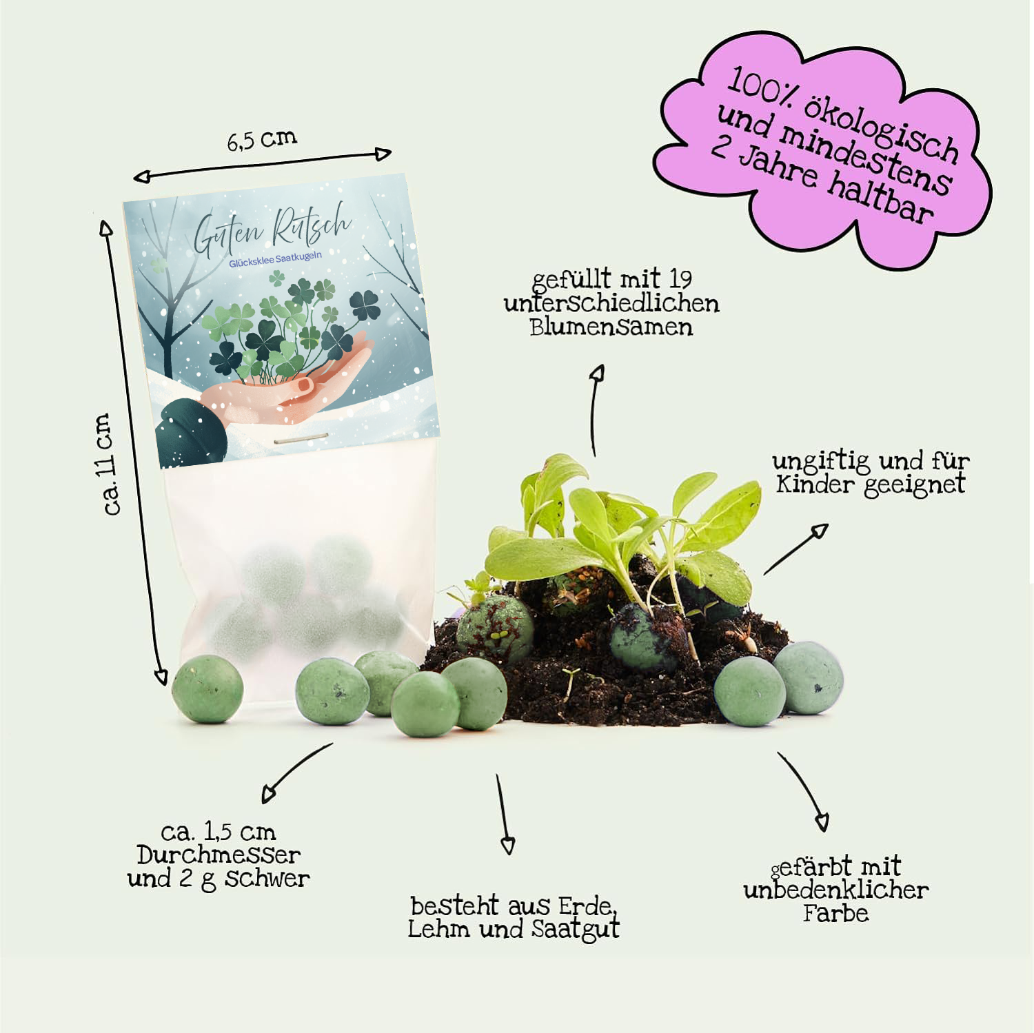 🍀 EXTRA PORTION GLÜCK: Mit unseren Seedbombs unterstützt du die Natur und machst Bienen glücklich. Einfach im Frühjahr werfen – die Kleesamen sorgen für die extra Portion Glück im neuen Jahr und bringen Leben in deinen Garten.