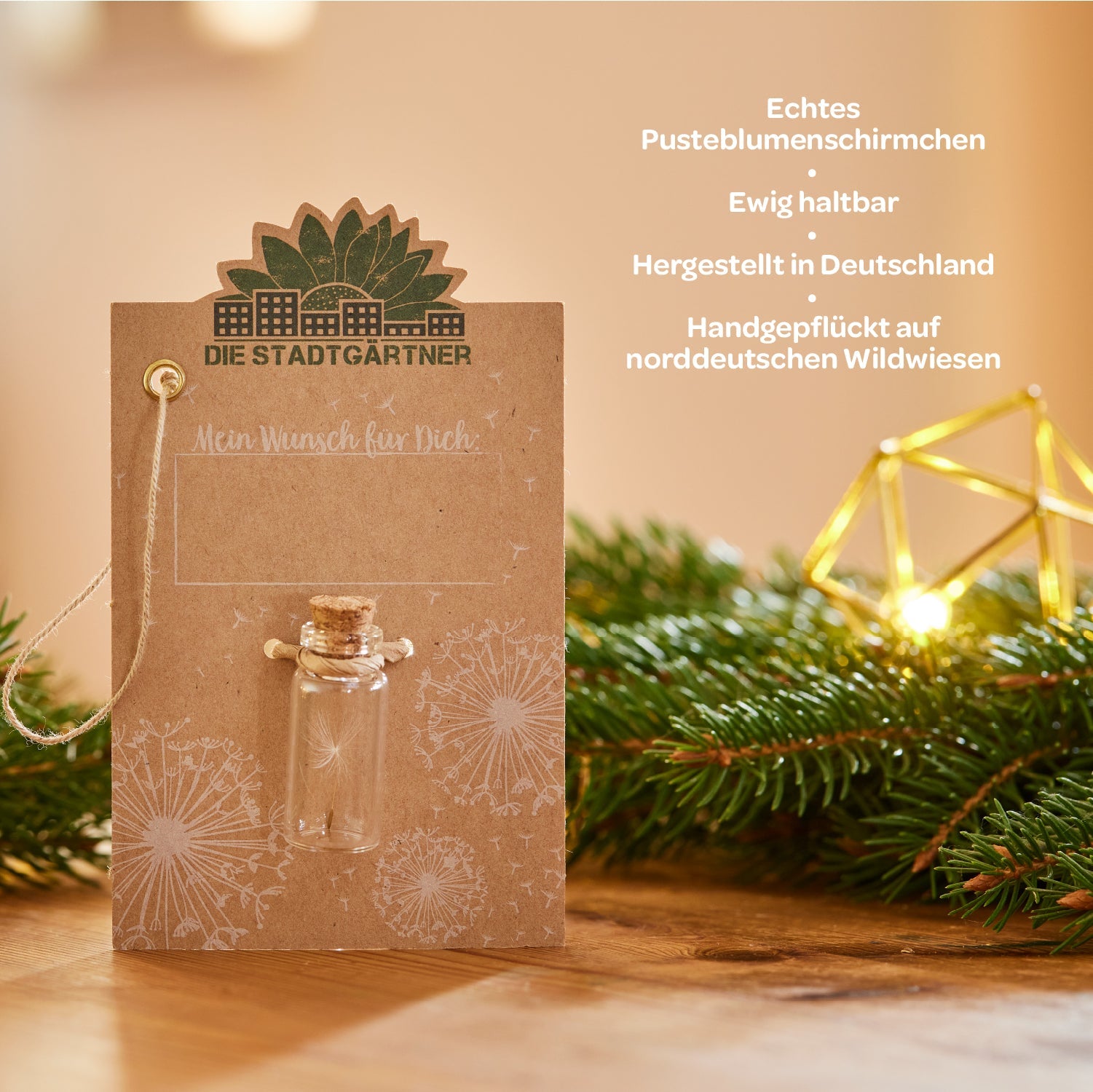 • Jedes Glas enthält eine echte Pusteblume mit durchschnittlich über 100 Wünschen