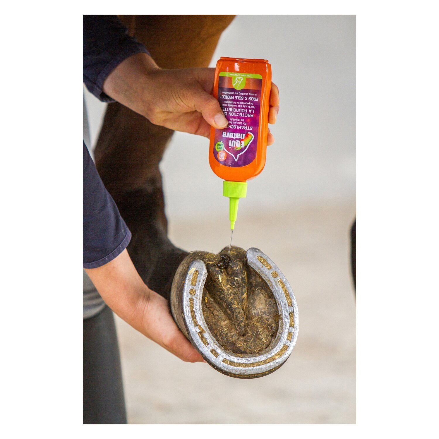 Zur nachhaltigen Pflege von Hufwand, Kronrand, Strahl und Sohle. Fördert das Wachstum der Hufe, erhält die Elastizität und verleiht einen glänzenden Auftritt. Praktische Sprühanwendung mit Überkopf-Funktion. Lorbeerblätteröl fördert die Durchblutung, pflegt den Kronrand und hält die Hufe elastisch und belastbar. Traubenkernöl verleiht den Hufen einen schönen, natürlichen Glanz. Keratin festigt das Hufhorn.