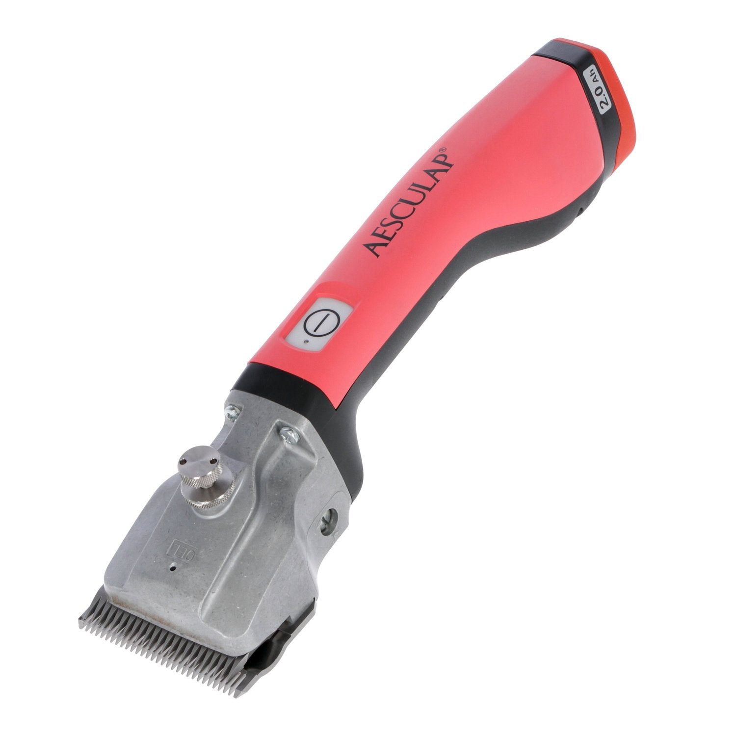 Extrem leichte, kabellose Schermaschine von AESCULAP für Teil- und Vollschur. Mit Lithium-Ionen-Akku. Einerseits schützt die Akku-Technology das Gerät vor Überhitzen und schaltet bei einer Batterietemperatur > 50° C den Betrieb bis zum Abkühlen ab. Andererseits informiert das Ladegerät über den Batteriezustand mit zwei LED-Anzeigen. Mit einer Länge von 295 mm ist die Maschine sehr kurz, und handlich sowie gut ausbalanciert. Die ergonomisch schlanke Maschine hat einen Umfang von 12.5 cm im Griffbereich und ist daher auch für kleine Hände optimal zu umfassen. Durch den im Gehäuse versenkten elektronischen Drucktaster kann die man nicht mehr versehentlich Ein/Ausschalten. Laufzeit: ca. 80 Min. Ladezeit: ca. 55 Min. Gewicht: ca. 900 g. DC Motor: 10.8 V. Geräuschpegel: ca. 65 db (A). Hubzahl: 2.500 U/Min. Mit Ladegerät, Messersatz GT 505/502 (23/31 Zähne), Öl und Anleitung im Hartschalenkoffer. Maße: ca. 29,5 cm x 7,5 cm x 7,8 cm